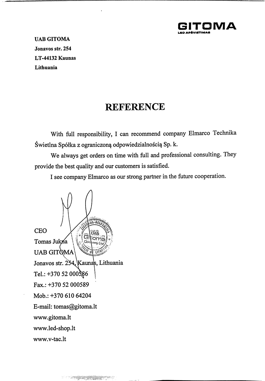 Nous recommandons sans réserve la société ELMARCO comme partenaire commercial fiable, solide et loyal.