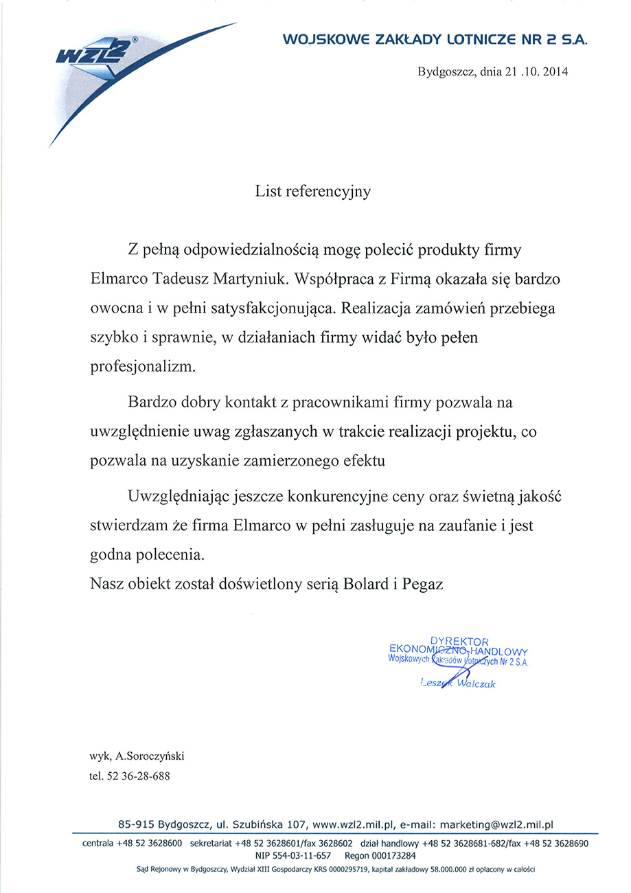 Directeur économique et commercial, Wojskowe Zakłady Lotnicze nr 2 S.A.