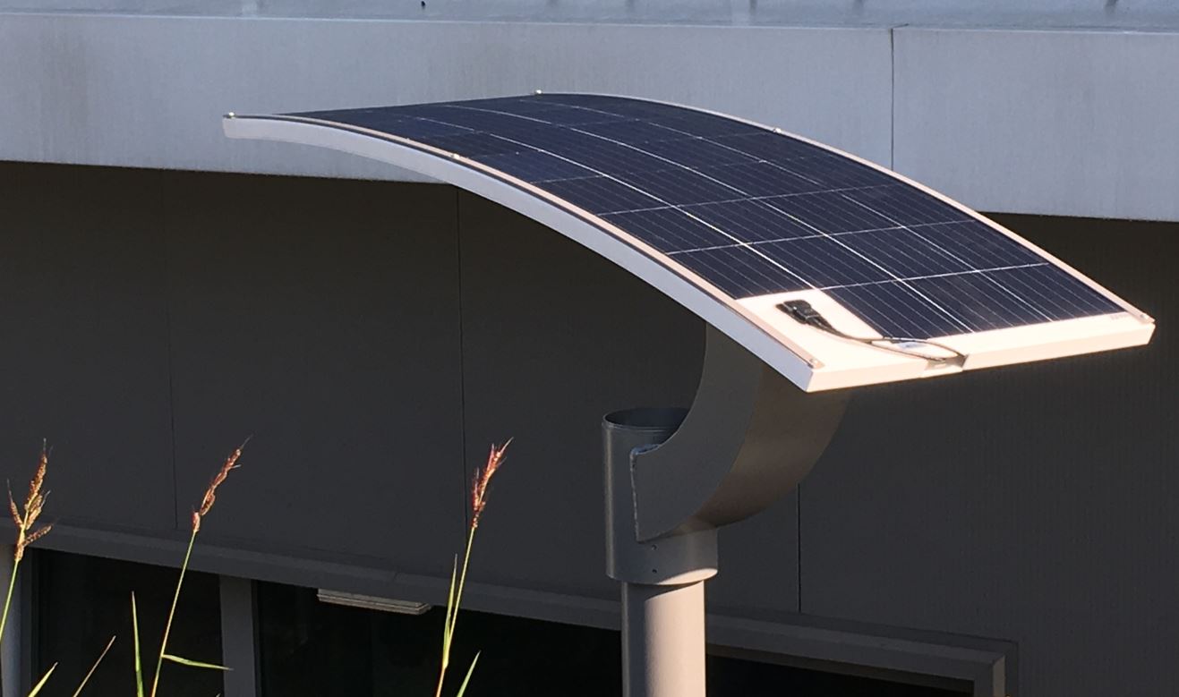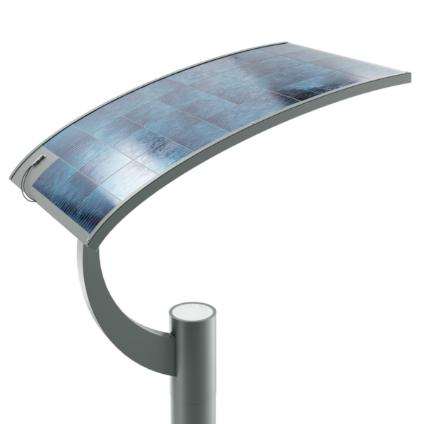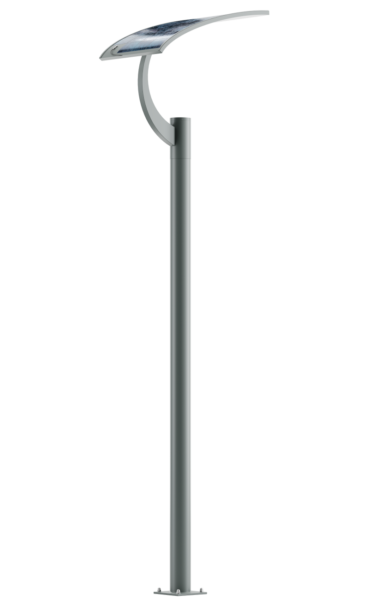 Nowoczesna latarnia oświetlająca przestrzeń na zasadzie światła odbitego, zbudowana z aluminiowej konstrukcji, na wierzchołku której umiejscowiona jest oprawa z charakterystycznym wysięgnikiem. Wyposażona w projektory LED. Ekran z blachy aluminiowej malowany białą, odbłyskową farbą. Na zewnętrznej części odbłyśnika umieszczony jest elastyczny panel fotowoltaiczny.